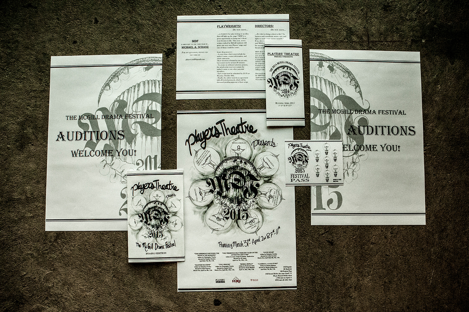 My work designing all the promotional materials for the McGill Drama Festival.