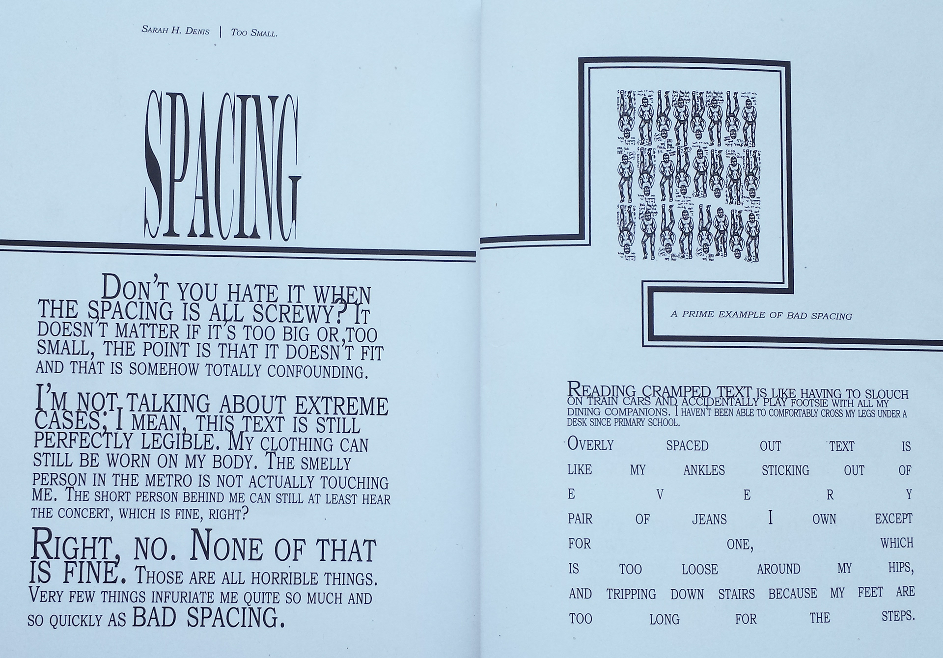 A book design on the subject of spacing and personal size.
